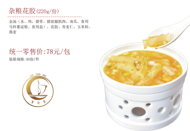詳細(xì)信息 雜糧花膠(220g/份) 金湯(水、雞、豬骨、豬前腿肌肉、南瓜、食用 馬鈴薯淀粉、食用鹽)、花膠、青麥仁、玉米粒、 燕麥 統(tǒng)一零售價:78元/包 裝箱規(guī)格:50份/件 共0條 相關(guān)評論 |