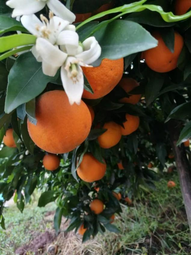 長葉香橙果實成熟后在樹上掛果保鮮的時間多在6~8個月,甚至有的地方在樹上掛果保鮮可達1年,一年四季都能在樹上隨時采摘鮮果;掛果時間最長的可在一棵樹上看見果實三代同堂的奇觀。目前的國內外橙類果實成熟后在樹上掛果時間為2~3個月。長葉香橙的果實無需殺菌、消毒、保鮮,隨時在樹上采鮮果上市,不僅節(jié)省了冷藏保鮮投資,還實現節(jié)能減排。