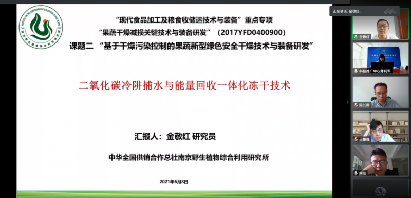 2021年6月,中華全國供銷合作總社科技推廣中心作為供銷合作系統(tǒng)內(nèi)唯一受總社委托開展科技成果管理相關(guān)工作的機構(gòu),按照科技部《科技成果評價辦法》,本著“科學(xué)、獨立、客觀、公正”的原則,組織七位相關(guān)領(lǐng)域?qū)<乙砸曨l會議形式對中華全國供銷合作總社南京野生植物綜合利用研究所完成的“二氧化碳冷阱捕水與能量回收一體化凍干技術(shù)”項目進(jìn)行了科技成果評價。
