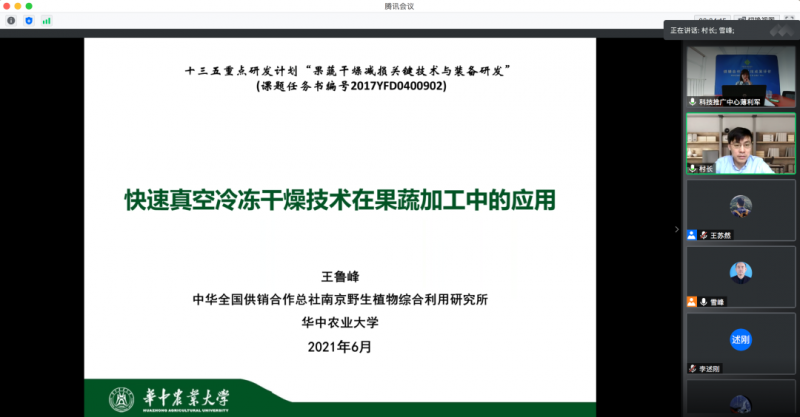 2021年6月,中華全國供銷合作總社科技推廣中心作為供銷合作系統(tǒng)內(nèi)唯一受總社委托開展科技成果管理相關(guān)工作的機(jī)構(gòu),按照科技部《科技成果評價辦法》,本著“科學(xué)、獨立、客觀、公正”的原則,組織七位相關(guān)領(lǐng)域?qū)<乙砸曨l會議形式對中華全國供銷合作總社南京野生植物綜合利用研究所、華中農(nóng)業(yè)大學(xué)聯(lián)合完成的“快速真空冷凍干燥技術(shù)在果蔬加工中的應(yīng)用”項目進(jìn)行了科技成果評價。