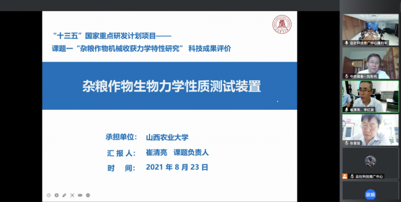 2021年8月,受山西農(nóng)業(yè)大學(xué)委托,中華全國(guó)供銷合作總社科技推廣中心作為供銷合作系統(tǒng)內(nèi)唯一受總社委托開(kāi)展科技成果管理相關(guān)工作的機(jī)構(gòu),按照科技部《科技成果評(píng)價(jià)辦法》,本著“科學(xué)、獨(dú)立、客觀、公正”的原則,組織七位相關(guān)領(lǐng)域?qū)<乙浴熬€上+線下”形式對(duì)“雜糧作物生物力學(xué)性質(zhì)測(cè)試裝置”成果進(jìn)行了科技成果評(píng)價(jià)。