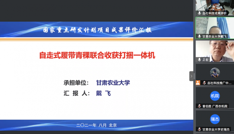 2021年8月,受甘肅農(nóng)業(yè)大學(xué)委托,中華全國供銷合作總社科技推廣中心作為供銷合作系統(tǒng)內(nèi)唯一受總社委托開展科技成果管理相關(guān)工作的機構(gòu),按照科技部《科技成果評價辦法》,本著“科學(xué)、獨立、客觀、公正”的原則,組織七位相關(guān)領(lǐng)域?qū)<乙浴熬€上+線下”形式對“自走式履帶青稞聯(lián)合收獲打捆一體機”成果進行了科技成果評價。