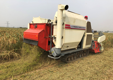 專家組經(jīng)評議認(rèn)為,該成果針對谷穗纏繞難分禾、谷碼主莖分離難、易糊篩等問題,開發(fā)了防纏減損收獲臺、適應(yīng)單稈單穗頭三級分支小籽粒作物的脫粒與清選裝置,設(shè)計(jì)了紋齒結(jié)合的防糊篩柔性縱軸流脫粒滾筒、風(fēng)量風(fēng)速可調(diào)的離心風(fēng)機(jī)與三段雙層編織篩,解決了不同成熟期谷子收獲作業(yè)的脫粒與清選技術(shù)難題。經(jīng)第三方機(jī)構(gòu)檢測,主要性能指標(biāo)(喂入量:3.7