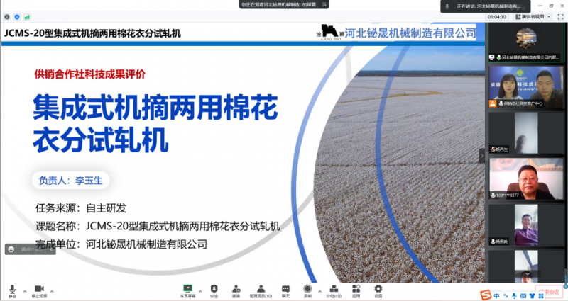 2022年9月,受河北鉍晟機械制造有限公司委托,中華全國供銷合作總社科技推廣中心作為供銷合作系統(tǒng)內(nèi)唯一受總社委托開展科技成果管理相關(guān)工作的機構(gòu),按照科技部《科技成果評價辦法》,本著“科學(xué)、獨立、客觀、公正”的原則,組織七位相關(guān)領(lǐng)域?qū)<覍?/span>“MJS20-280型集成式棉花衣分試軋機”成果進行了科技評價。
