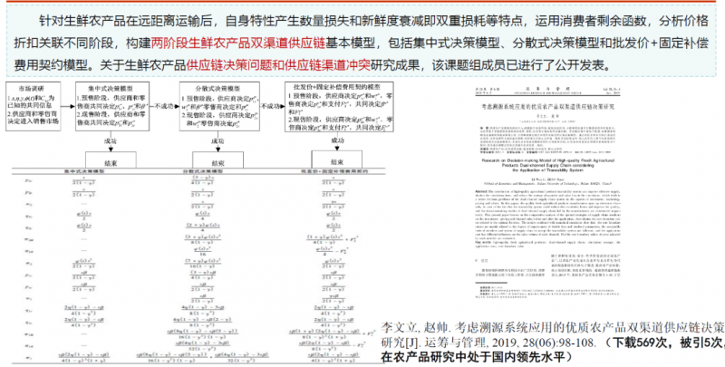 專家組經(jīng)評議認為,成果針對我國村鎮(zhèn)社區(qū)居民消費升級需求及連鎖商貿(mào)采購難題,分別針對大數(shù)據(jù)賦能供應商選擇、農(nóng)產(chǎn)品生產(chǎn)、小村微店供貨開展模式創(chuàng)新研究,構(gòu)建了數(shù)智化供應商甄選集采模式、連鎖商超直營農(nóng)場集采模式、面向小村微店供貨的集采物流模式。搭建了村鎮(zhèn)社區(qū)連鎖商超集采平臺,實現(xiàn)了供應鏈垂直整合與農(nóng)產(chǎn)品生產(chǎn)后向一體化、連鎖商貿(mào)與小村微店競合共贏,富有創(chuàng)新性,具有重要的學術(shù)價值和應用價值。成果成功應用在十堰新合作連鎖商貿(mào)50余個直供直采基地及50家線下零售小店,京東電商20余個自營農(nóng)場及30家京東便利店。對于村鎮(zhèn)社區(qū)連鎖商超規(guī)避采購風險、降低采購成本、提升采購效率作用明顯,經(jīng)濟效益顯著。成果總體達到國內(nèi)先進水平。