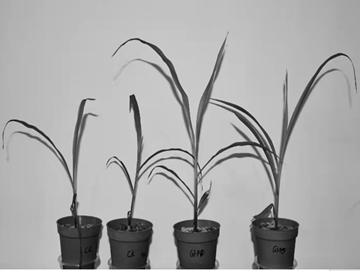 圖2 鹽脅迫下玉米幼苗生長狀況。左側(cè)兩盆:CK;右側(cè)兩盆GNC處理。