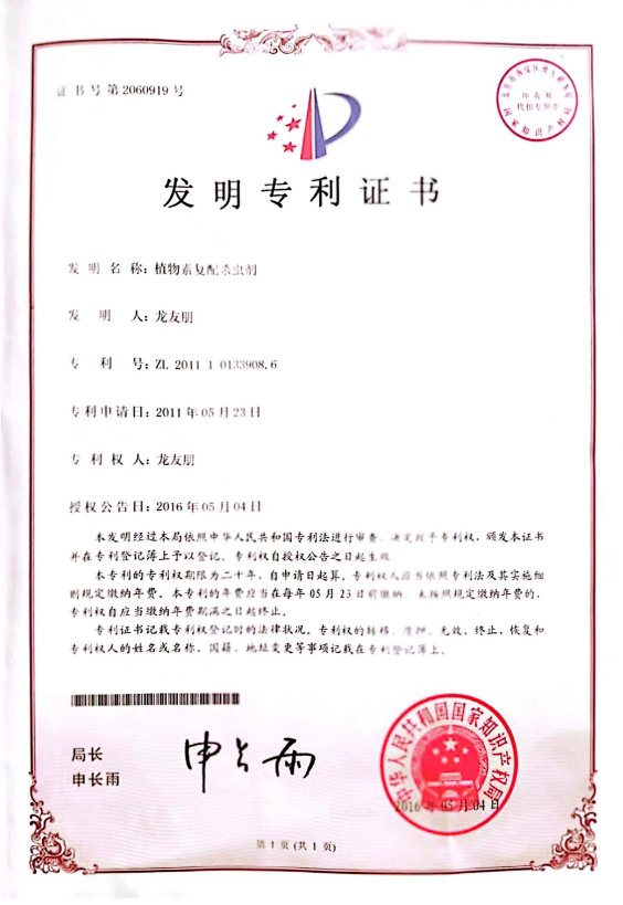 一種生物農(nóng)藥制劑,一種植物素有機(jī)復(fù)配殺蟲制劑。它主要是解決目前使用的化學(xué)農(nóng)藥易對環(huán)境造成污染,易對人畜造成危害,而現(xiàn)有生物農(nóng)藥效果差或生產(chǎn)工藝復(fù)雜等技術(shù)問題。其技術(shù)方案要點(diǎn)是:將苦楝素、苦參堿等按特定重量比配制而成。它是以植物原料提煉的組份復(fù)配而成,是一種廣譜、高效、低毒、易降解、無殘留的殺蟲劑且沒有抗藥性的環(huán)保農(nóng)藥,可防治菜青蟲、小菜蛾、菜螟、蚜蟲、斜紋夜蛾、茶葉毛蟲、菜蟻、稻飛虱、稻卷螟、鉆心蟲等,而且生產(chǎn)工藝簡便、生產(chǎn)成本較低,具有很好的市場前景。