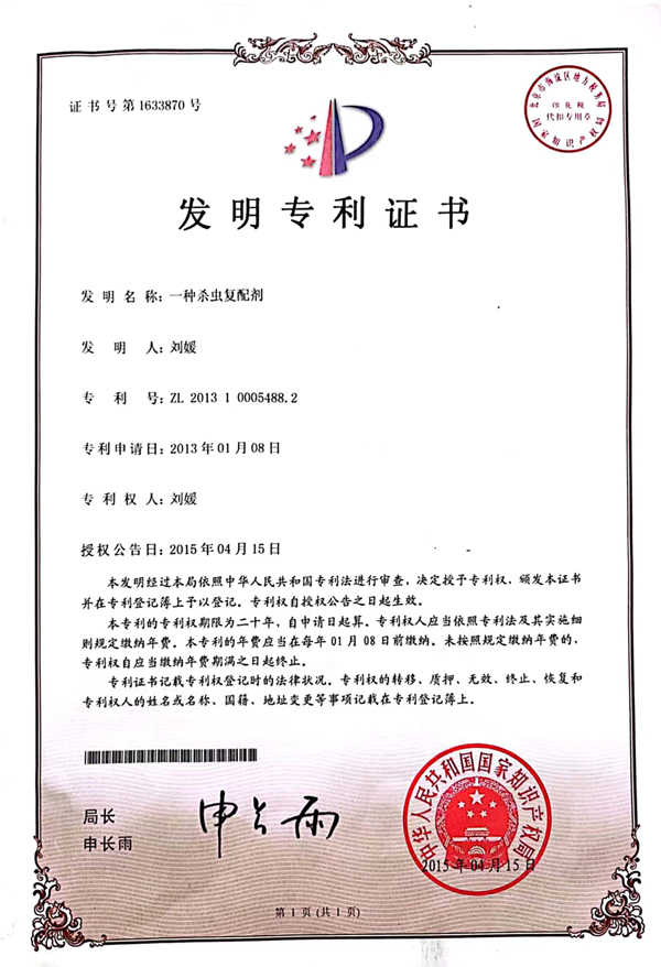 [0012] 使用本發(fā)明中所述的殺蟲復(fù)配劑時,將殺蟲復(fù)配劑與水以一定比例配好藥液,一般是按殺蟲復(fù)配劑與水的重量比為1:40進(jìn)行配制藥液,也可以按照其他比例進(jìn)行配比。