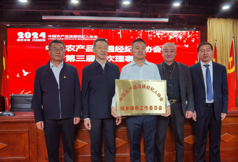 城鄉(xiāng)保供工作委員會主任趙從進懷著激動的心情從協(xié)會會長劉躍忠手上接過“中國農(nóng)產(chǎn)品流通經(jīng)紀人協(xié)會城鄉(xiāng)保供工作委員會”牌匾,標志著中國農(nóng)產(chǎn)品流通經(jīng)紀人協(xié)會城鄉(xiāng)保供工作委員會正式成立。