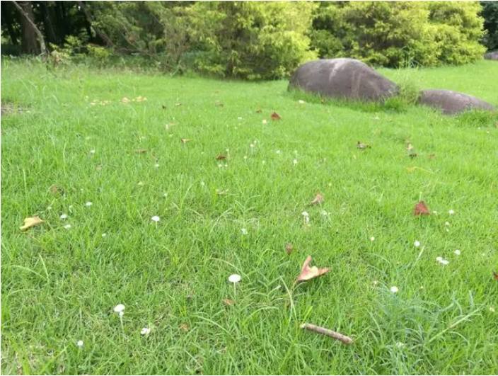黃白小菇在雨后的草地上大量生長(zhǎng)|周明瑋 攝