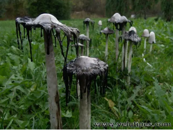 毛頭鬼傘成熟后,菌蓋溶解成黑色的液體,以傳播孢子,這也是“鬼傘”這一名稱(chēng)的由來(lái)|圖源:水印