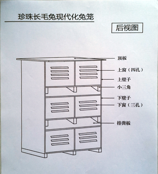 (3)兔籠建造。以采用三層立體式兔籠最為適宜,兔籠尺寸一般為70厘米×60厘米×55厘米或60厘米×60厘米×55厘米。養(yǎng)殖密度不宜過高,規(guī)模養(yǎng)殖1畝地可建800個(gè)兔籠。一般600只兔可年產(chǎn)1噸兔毛,兩個(gè)人可管理1200只兔子。