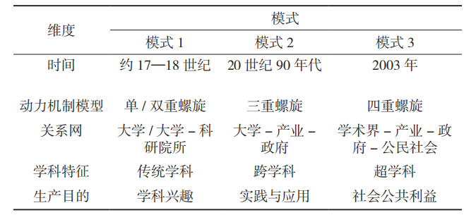 圖1知識(shí)生產(chǎn)模式1-3演變圖譜