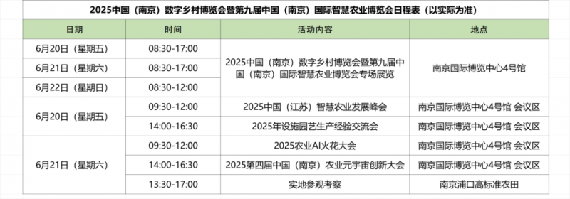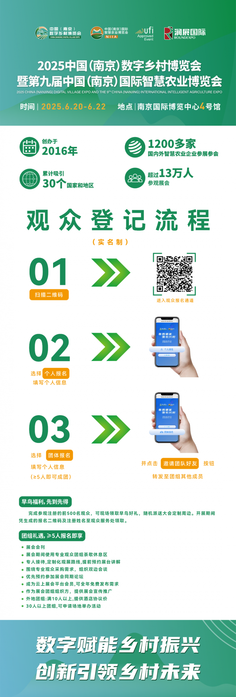 6月20-22日,2025中國(guó)(南京)數(shù)字鄉(xiāng)村博覽會(huì)暨第九屆中國(guó)(南京)國(guó)際智慧農(nóng)業(yè)博覽會(huì)將強(qiáng)勢(shì)來襲!