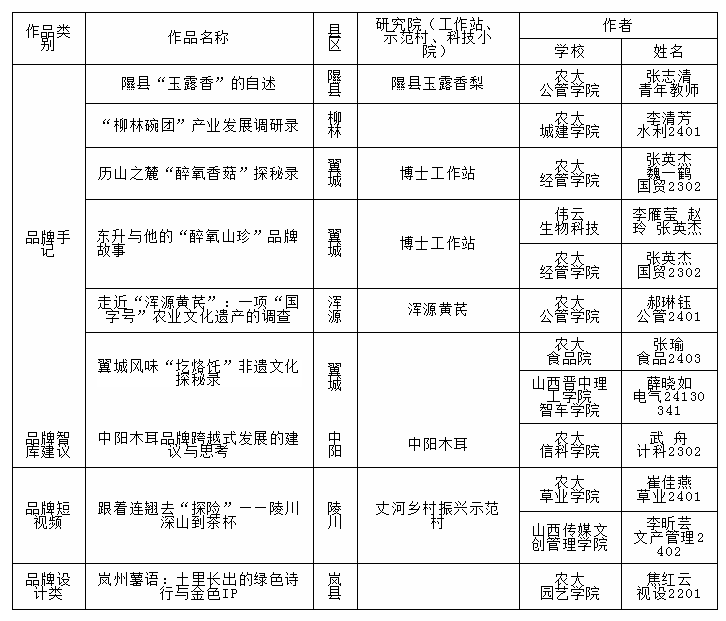 此次活動,由山西農(nóng)業(yè)大學(xué)和山西省品牌研究會等單位聯(lián)合發(fā)起,以山西農(nóng)業(yè)大學(xué)的“晉農(nóng)學(xué)子智庫研習(xí)工坊”(關(guān)注人數(shù)破400+)及其跨學(xué)科導(dǎo)師團(tuán)隊(duì)為內(nèi)容生產(chǎn)的運(yùn)作方,以產(chǎn)出優(yōu)秀成果為導(dǎo)向,通過一對一專題輔導(dǎo)、定向邀請等方式精心組織指導(dǎo),中國農(nóng)業(yè)科技推廣網(wǎng)、中國大學(xué)生在線、山西農(nóng)民報(bào)強(qiáng)農(nóng)科技、鄉(xiāng)村發(fā)展研究等4家媒體開設(shè)專欄同步轉(zhuǎn)載發(fā)布此次活動的優(yōu)秀作品,及校內(nèi)外的創(chuàng)新創(chuàng)業(yè)學(xué)院、晉農(nóng)公管、溫心語錄、陵川青年、太行藥鄉(xiāng)中藥產(chǎn)業(yè)網(wǎng)等新媒體持續(xù)關(guān)注大學(xué)生推薦官消息和作品,已遴選發(fā)布品牌手記、品牌智庫建議、品牌短視頻、品牌設(shè)計(jì)類等4大類作品9篇優(yōu)秀作品,率先推薦了隰縣、柳林、翼城、渾源、中陽、陵川、嵐縣等7個(gè)縣的玉露香梨、柳林碗團(tuán)、醉氧香菇、渾源黃芪、中陽木耳、陵川連翹、嵐縣馬鈴薯等7個(gè)地理標(biāo)志產(chǎn)品,參與大學(xué)生或創(chuàng)業(yè)新農(nóng)人涉及山西農(nóng)大公管、城建、經(jīng)管、信科、草業(yè)、園藝,以及山西傳媒文創(chuàng)管理學(xué)院、山西偉云生物科技等單位8個(gè)不同專業(yè)背景的13名作者,文稿累計(jì)超過54000字、圖片85張,展現(xiàn)了新時(shí)代大學(xué)生生動活力、獨(dú)特潛力及他們的為農(nóng)情懷,為鄉(xiāng)村振興注入澎湃的青春動能。
