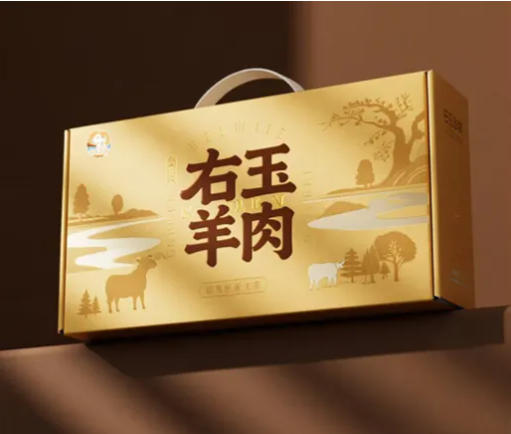 我們?cè)O(shè)計(jì)的禮盒包裝主體采用高貴、喜慶的金黃色,用燙金工藝勾勒出抽象化的樹(shù)木、羊群和河流圖案,寓意珍貴與豐收?!坝矣裱蛉狻弊鳛楹诵奈淖中畔⒕又型怀?,確保第一時(shí)間吸引消費(fèi)者視線。背景圖案則由藝術(shù)化處理的樹(shù)木、羊群、河流等抽象圖案構(gòu)成,形成一幅和諧的自然畫卷。整體設(shè)計(jì)不僅美觀,更清晰地傳達(dá)了產(chǎn)品的可溯源品質(zhì)和獨(dú)特的文化價(jià)值,兼具禮品屬性與收藏價(jià)值。
