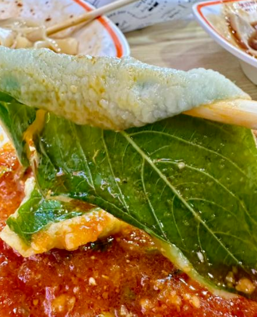 玉谷葉本身帶著清新的草木香氣,裹上面粉后,那股清香被牢牢鎖住,還多了幾分綿軟的口感;豆角原本脆嫩,經(jīng)過煮制,變得軟糯卻又不失韌勁,蛋液和面粉的包裹讓它多了一層柔滑的外皮;土豆在這個(gè)過程中,吸收了蛋液的鮮香和面粉的麥香,粉糯的質(zhì)地和面衣相互交融,帶來豐富的口感體驗(yàn)。搭配西紅柿蘸料,一口下去,既有蔬菜的清爽、土豆的粉糯,又有蘸料的濃郁風(fēng)味,是童年記憶里最難忘的美味,也是老街巷中煙火氣息的溫暖象征。