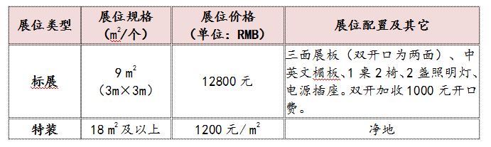 展位價(jià)格: