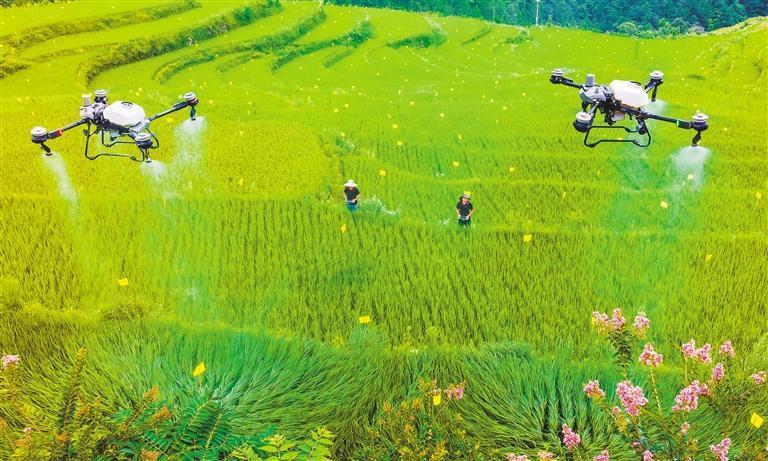 8月19日,湖北省宜昌市秭歸縣工作人員操縱無人機(jī)對水稻進(jìn)行飛防作業(yè)。鄭家裕 攝(中經(jīng)視覺)