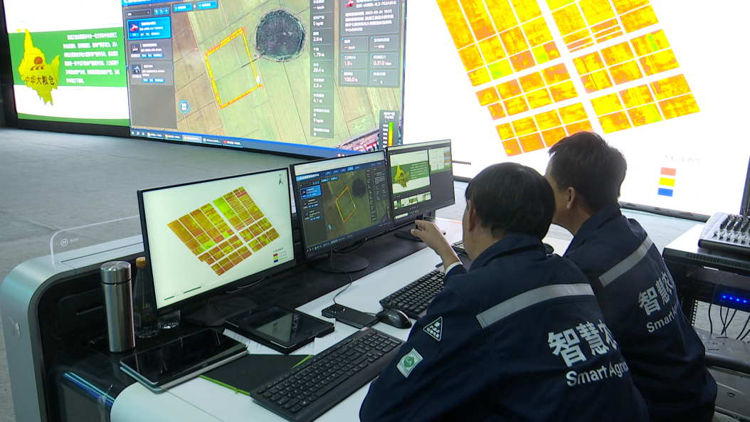七星農(nóng)場(chǎng)“科技賦能農(nóng)業(yè)生產(chǎn)”的場(chǎng)景不僅在田間地頭,還在農(nóng)場(chǎng)智慧農(nóng)業(yè)指揮中心的大屏幕上上演。今年,該中心首次投入應(yīng)用多光譜成像水稻長(zhǎng)勢(shì)圖,為秋收提供了精準(zhǔn)高效的數(shù)據(jù)支撐?!拔覀兺ㄟ^(guò)大數(shù)據(jù)、人工智能等技術(shù),分析水稻成熟度、未來(lái)氣象等,制定收獲排期,讓秋收更為有序。”該指揮中心高級(jí)主管王勇說(shuō)。