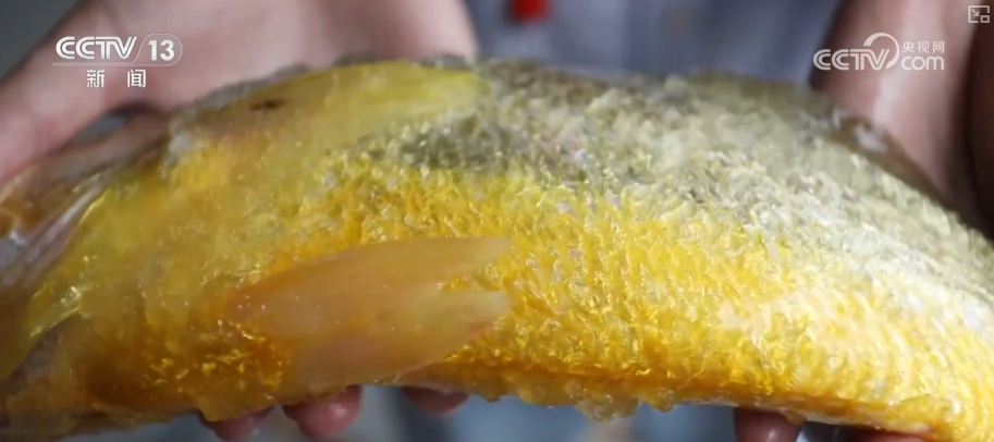 這里是“國信1號2-1”大型養(yǎng)殖工船的養(yǎng)殖艙,記者手中的大黃魚是黃色的,而水池里正在生長的大黃魚是白色的。這是因為大黃魚體內(nèi)有一種特殊的色素,在黑暗環(huán)境下色素會擴散,從而呈現(xiàn)黃色。而白天在光線照耀下色素會聚集,從而呈現(xiàn)白色。在捕撈前,工作人員會保持24小時黑暗環(huán)境,這樣起捕后的大黃魚通體金黃品相最佳。