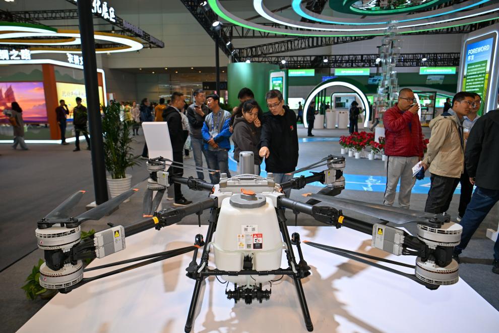 10月17日,觀眾在第二十二屆中國國際農(nóng)產(chǎn)品交易會的農(nóng)業(yè)科技展區(qū)參觀。新華社記者 孫凡越 攝