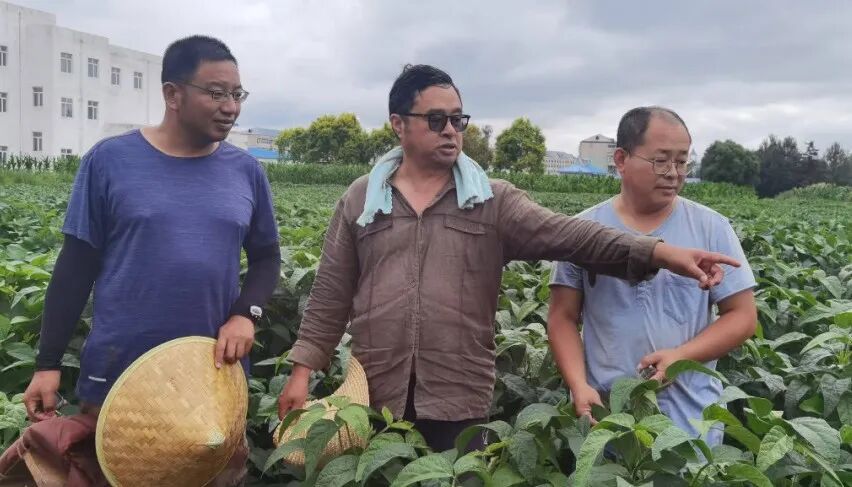 大豆育種研究室人員在查看鑒評大豆品種田間長勢