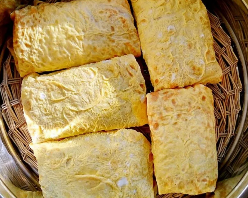 將包好的卷卷擺放到籠屜中,采用傳統(tǒng)方法上鍋蒸熟。蒸好后,若涼吃需先取下蒸籠晾涼再取出,避免燙破蛋皮;熱吃可直接切塊。晾涼后的卷卷放在案板上,用另一塊案板壓上重物,根據(jù)卷卷承受能力調(diào)整重量,壓制約1個(gè)多小時(shí)。最后在表面抹上香油防蛋皮干硬,成品晾涼后可冷藏儲(chǔ)存。吃的時(shí)候,搭配上用蒜末、香醋、香油、辣椒油等調(diào)制而成的蘸料,酸辣開胃,讓太谷卷卷的風(fēng)味更上一層樓。