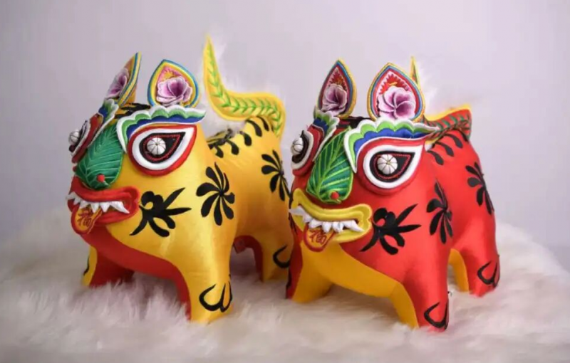 黎侯虎的精妙之處,在于其精湛的工藝。制作黎侯虎,要經(jīng)過剪、縫、刺、編等32道工序,工序復(fù)雜且精細(xì),每一步都傾注著繡娘的心血。材料一般選用當(dāng)?shù)貎?yōu)質(zhì)的棉布,確保布料柔軟舒適且耐用。繡娘們要依據(jù)設(shè)計(jì)好的圖紙,將布料剪成虎身、虎頭、虎四肢等各個(gè)部件。最難的是刺繡。繡娘們用五彩絲線,在虎身繡出精美的花紋,這些刺繡圖案不僅美觀,更增添了黎侯虎的文化內(nèi)涵。之后便是填充與縫合,將裁剪好的布料填充棉花,使其飽滿立體,再精心縫合各個(gè)部件,一只栩栩如生的黎侯虎便初現(xiàn)雛形。