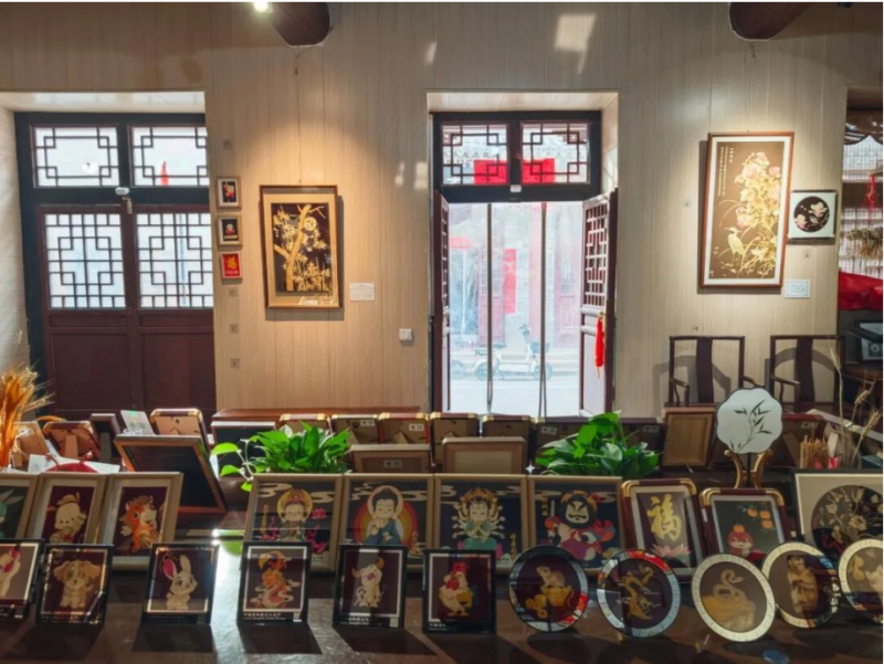 麥稈畫的“輕”與“重”,是我在調(diào)研中最深刻的感受。說它“輕”,是因為它的原料不過是大自然中的麥稈,農(nóng)人眼中的尋常物,經(jīng)挑揀、熏蒸、剪切、粘貼,竟能成為畫筆。這種化腐朽為神奇的技藝,藏著農(nóng)耕文明里最樸素的智慧。說它“重”,是因為它承載的不僅是技藝,更是一段地域文化的記憶。太谷作為晉商故里,麥稈畫曾是商號往來的伴手禮,既顯鄉(xiāng)土氣息,又藏商道文化,每一根麥稈的走向,都連著一方水土的歷史脈絡(luò)。但傳承的“難”更讓人揪心。包括市場適配不足,酒香也怕巷子深的生存困境;技藝存續(xù)風(fēng)險,細(xì)節(jié)流失的隱性危機;傳承生態(tài)弱化,文化土壤的逐漸流失等。如何讓古老技藝找到當(dāng)代價值,讓傳承人獲得尊重與回報,讓非遺從被保護(hù)走向被需要,這正是破解傳承困境的關(guān)鍵所在。