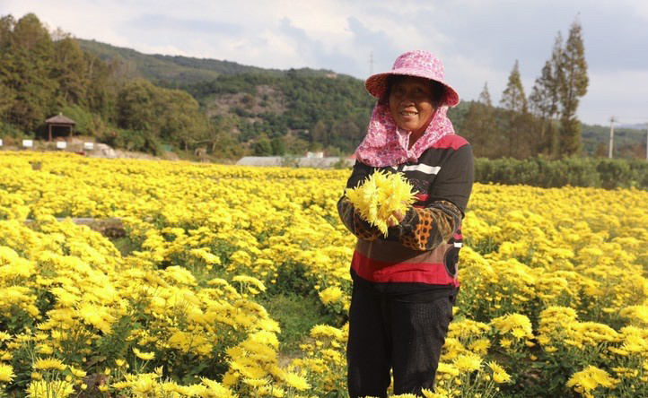 海頭村金絲皇菊豐收時的場景。(資料圖片)