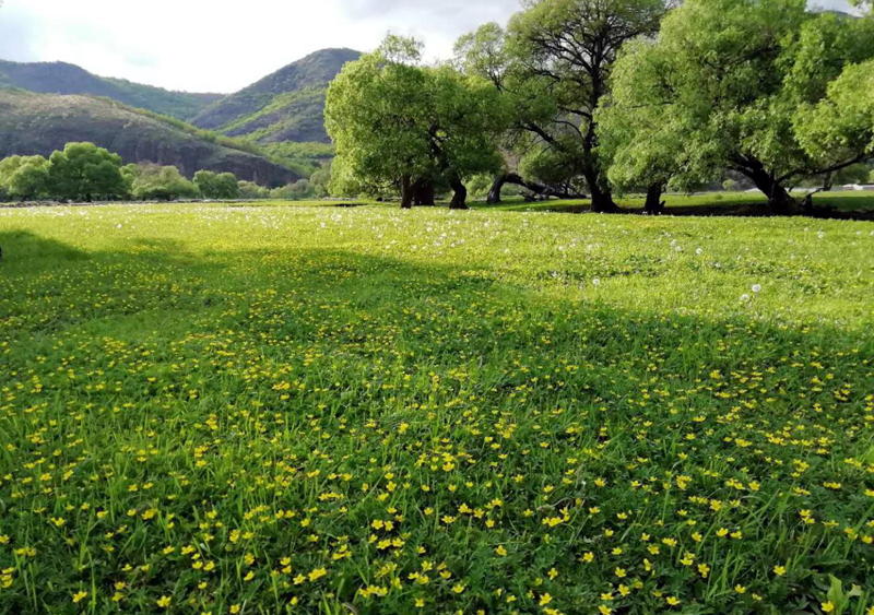 有了水,一切都變得滋潤和活泛起來。河流兩岸生長著挺拔的柞樹、豐潤的青草、清香的柳蒿菜、蕨菜、廣東菜、星星點點的小黃花、零零落落的小白花、鮮艷欲滴的芍藥花等植物。水養(yǎng)綠色,滋潤生態(tài),生態(tài)如同生命,人與自然和諧共生是建設(shè)美好家園的底線,良好的生態(tài)需要優(yōu)先保護。天然綠色,是最讓人舒服的顏色。在這里,可以讓自己盡情地沉浸在陽光、綠地之間,放眼鮮花叢中,看著天空白云飄過,享受周圍青草的清新味夾雜著花香飄散四溢,暫時逃離日??菰锏纳?,體驗無拘無束的自由和暢快,放飛心靈開啟任性的旅行。
