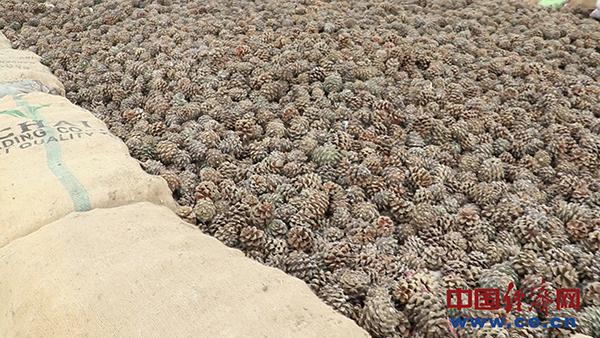 貿(mào)易商從農(nóng)戶處收集松果后,進行洗滌、烘干,以免松子在運輸途中腐爛?!鞍突固顾晒?月20日左右完全成熟后,開始采摘,大約需要15到20天才能收集齊所有松果。之后進行沖洗,洗滌過程需要10到15天,再等15天變干,松果自然會打開,從中取出松子?!?/span>