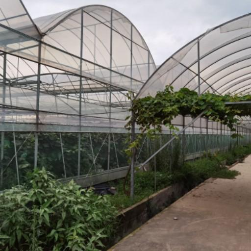 1.2塑料大棚 塑料大棚以鋼(管)材或以竹木為主骨架,拱形,南北走向,上覆塑料薄膜。每棚長度50 米左右,跨度6~10 米。這種大棚對南方避雨效果較好,近年來廣泛用于葡萄的避雨栽培。