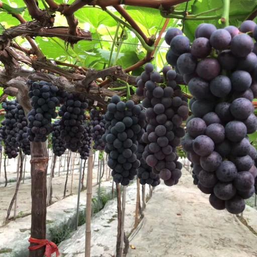 5.1.2 結(jié)果期施肥 在春季至果實膨大前,每畝用豐田寶生物有機肥300~500公斤(預(yù)計產(chǎn)量的10%),溝施于根部,埋土,壓實,澆透水即可;覆蓋黑色底膜,可促進葡萄提前結(jié)果和成熟。