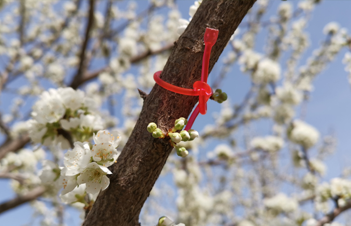 打藥難防治的梨小食心蟲,被果樹上懸掛的一根根不起眼的“紅繩子”給治的明明白白的。這個不起眼的紅繩子就是“梨小食心蟲迷向絲”,防治食心蟲,有著大作用。