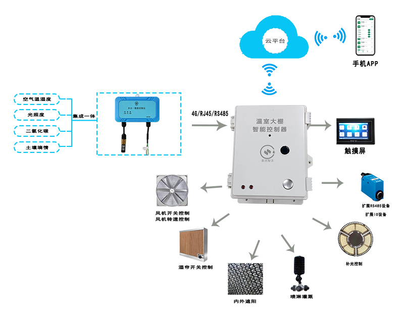溫室大棚智能控制器遠(yuǎn)程手機(jī)APP控制,可廣泛應(yīng)用于溫室、育苗、育種花卉培育等對溫室大棚環(huán)境有嚴(yán)格控制需求的場地