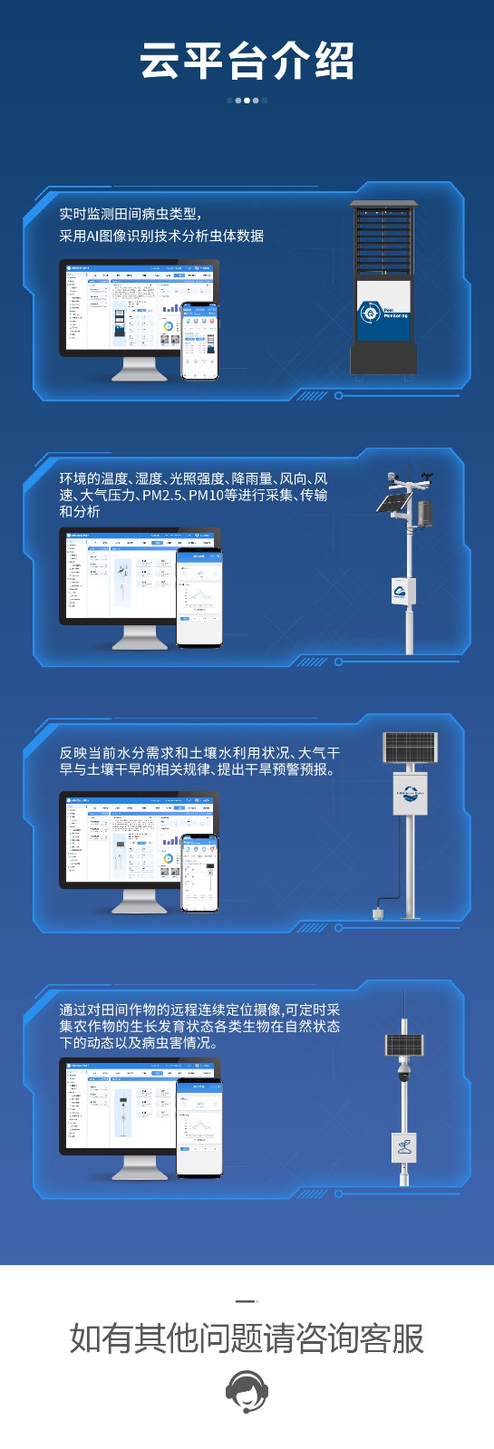 關(guān)鍵詞:四情監(jiān)測(cè)系統(tǒng)智慧農(nóng)業(yè)農(nóng)田監(jiān)測(cè)氣象蟲(chóng)情土壤墑情苗情免費(fèi)云平臺(tái),供應(yīng),現(xiàn)代農(nóng)業(yè)(智慧 數(shù)字 生態(tài))無(wú)人機(jī),檢測(cè)/傳感器/攝像頭/數(shù)據(jù)采集
